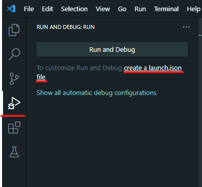 아이콘 선택 -> create a launch.json file 클릭한다.