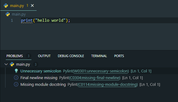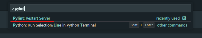 안될시 ctrl + shift + p -> pylint: Restart Server
