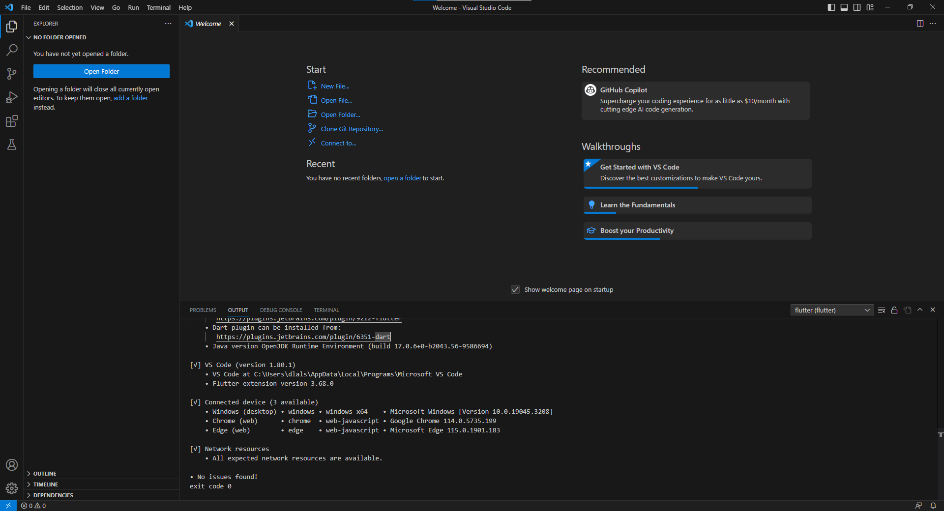 컴퓨터를 포멧하고 Flutter를 다시 설치하려고 했다. flutter가 잘 설치되었는지 확인하는데 VSCode의 output창이 색이 없어서 알아보기 힘들었다. extension을 지원할 것 같아서 찾아보았다.