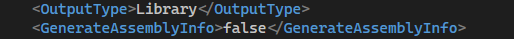 값이 false면 AssemblyInfo.cs ( 이름, 설명, 버전 등과 같은 정보가 포함된 파일) 을 프로젝트 내에서 찾고